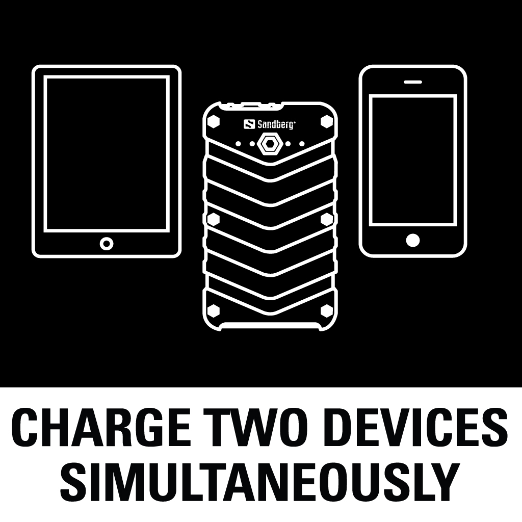 بطارية Sandberg Survivor Powerbank هي البطارية الاحتياطية المثالية لإعادة شحن الهواتف المحمولة وأجهزة USB المحمولة الأخرى. مغلفة بغلاف قوي معتمد بشهادة IP67، يمكن لهذه البطارية أن تتحمل بعض المعاملات القاسية. مقاومة للماء والصدمات والغبار: يمكنك أخذها معك إلى أي مكان تقريباً، سواء كان ركوب الأنهار، تسلق الجبال، المهرجانات أو التخييم – القائمة لا تنتهي. البطارية الهائلة بجودة عالية بسعة 20000 مللي أمبير توفر لك طاقة كافية لإعادة شحن هاتف ذكي نموذجي 4 مرات، مما يجعلك مستقلاً عن الكهرباء الرئيسية لأكثر من أسبوع. تشحن ما يصل إلى جهازين USB في نفس الوقت. مصباح قوي بمدى 30 متراً مدمج.
