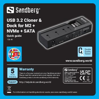 يمنحك Sandberg USB 3.2 Cloner & Dock for M2 + NVMe + SATA اتصالاً خارجيًا سهلاً بين وحدة التخزين التقليدية من نوع SSD ووحدات التخزين الأخرى من نوع NVMe M.2 SSD 3.5"/2.5" SATA بمختلف أحجامها. أدخل الأقراص في هذه القاعدة المشتركة صغيرة الحجم وسهلة الحمل مع عدم الحاجة إلى استخدام الكبائن والمسامير. فهي تتصل بمنتهى السهولة بجهاز الكمبيوتر من خلال منفذ USB-A أو USB-C وتعمل فورًا. يمكنك الحصول على سرعات نقل فائقة تصل إلى 10 جيجا بايت في الثانية باستخدام واجهة USB 3.2. يمكنك أيضًا نسخ محتويات قرص صلب إلى قرص صلب آخر بالكامل بدون الاتصال بالكمبيوتر الشخصي. تعمل ميزة النسخ في الاتجاهين.