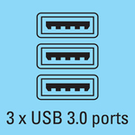• 3 USB-A ports for mouse, keyboard and external hard drive, for instance
