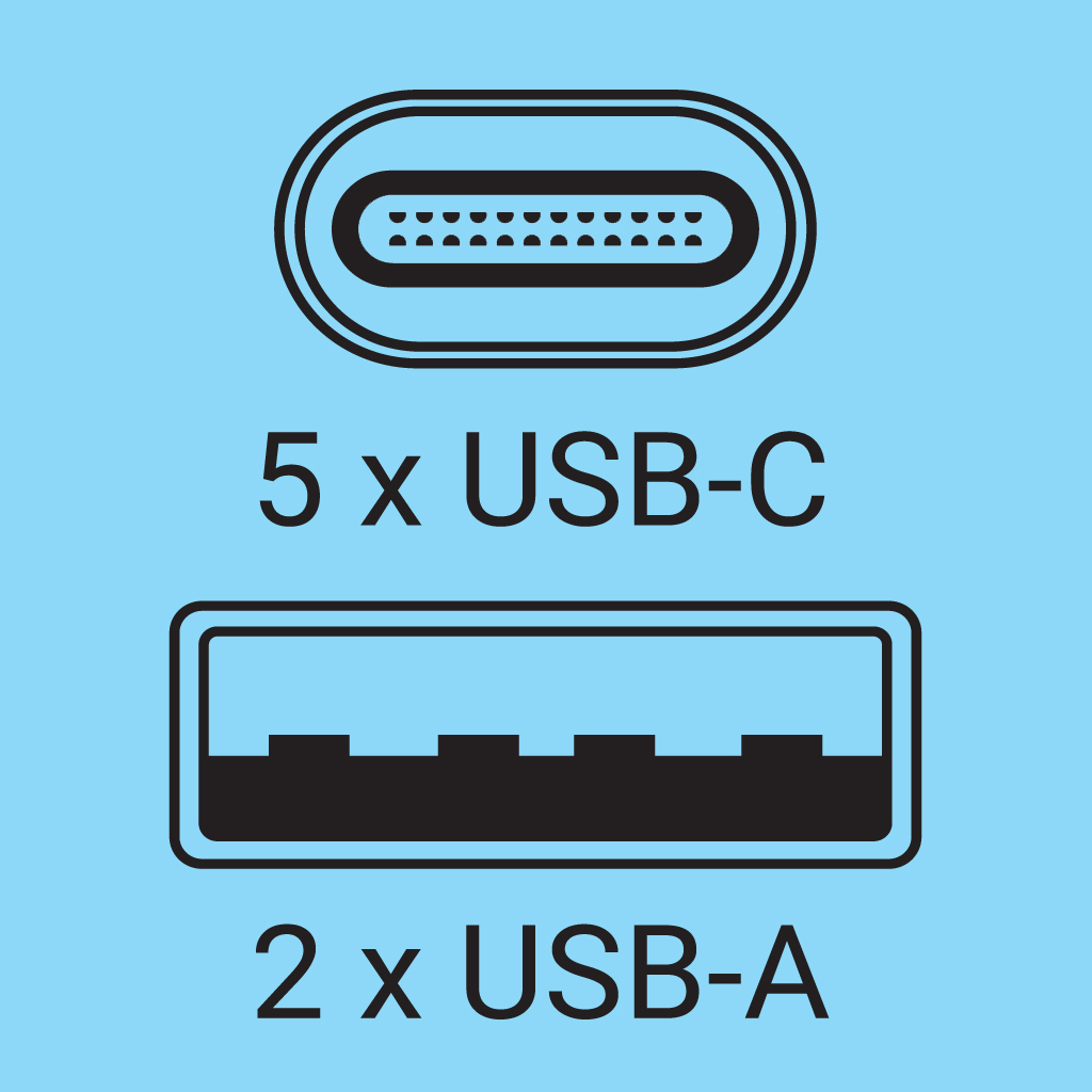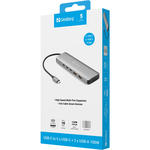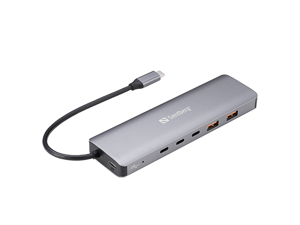 Sandberg USB-C to 5xUSB-C+2xUSB-A 100W ti omogućava maksimalno proširenje iz jednog USB-C porta. Sa ukupno pet USB-C portova i dva USB-A porta, možeš povezati i napajati više uređaja istovremeno – sa brzinama prenosa podataka do 10 Gbps na svih 7 portova. Podrška za Power Delivery do 100W omogućava ti da puniš laptop dok koristiš samo jedan USB-C port. Kompaktno aluminijsko kućište čini hub robusnim i lakim za nošenje, bilo da si u kancelariji ili na putu.