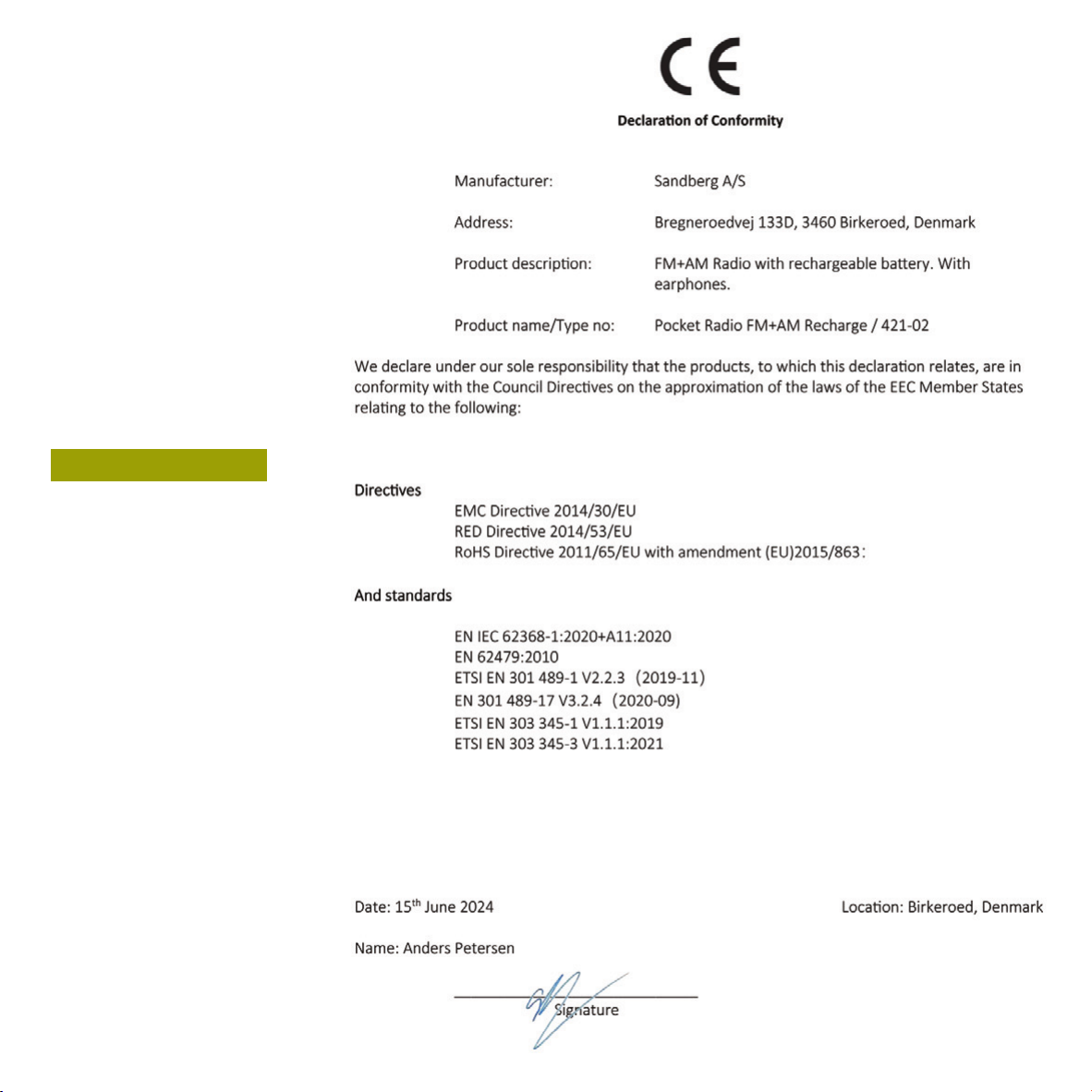 CE letter of