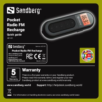 Sandberg Pocket Radio FM Recharge is ultra-compact and convenient to take with you on your outdoor activities. It's perfect for jogging, biking, camping and so on. It also makes for an ideal emergency radio if the power grid and internet fail. Attached clip makes it easy to attach to clothing or a backpack. With built-in rechargeable battery. Included earphones double as an antenna for receiving FM radio signal.