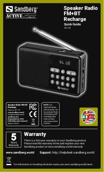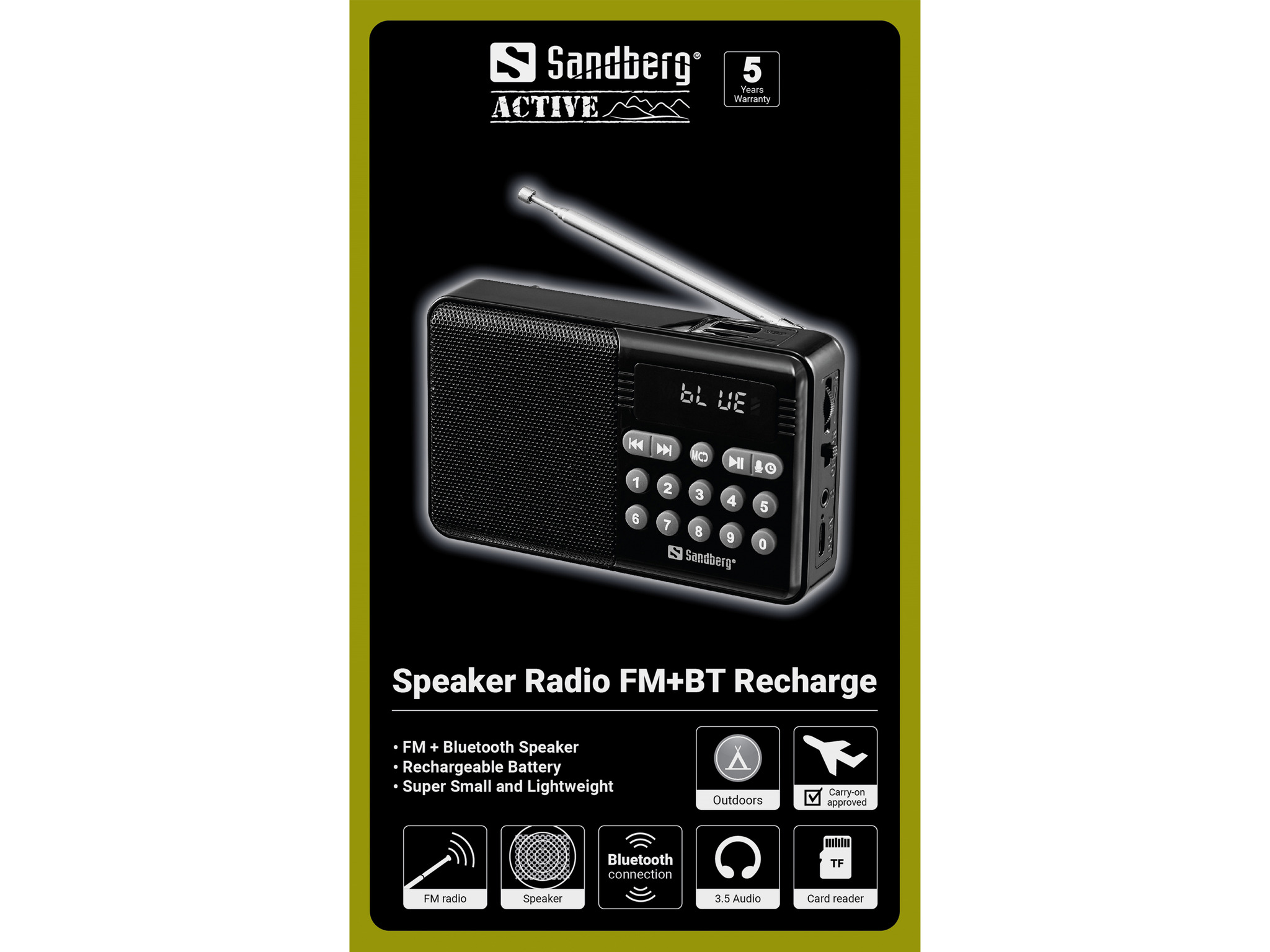 • 1 Sandberg Speaker Radio FM+BT Recharge