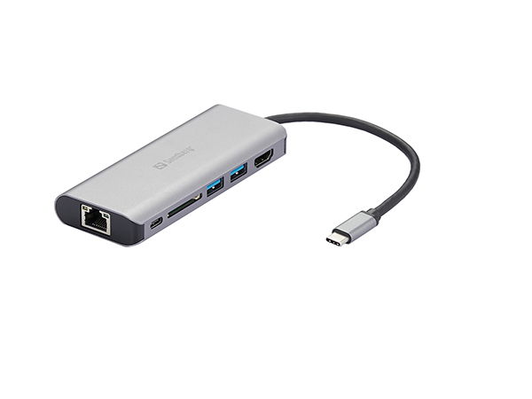 The Sandberg USB-C Dock offers you lots of useful connections for your computer with USB-C port. You can connect an extra monitor, TV or projector by HDMI. You can deploy the USB 3.0 ports to connect USB devices. RJ45 connector for cabled network connection. You can even read and write on SD cards by the built-in SD card reader. And as icing on the cake, the dock is equipped with a USB-C throughput to connect power. This way your computer can charge and have the dock connected at the same time.
