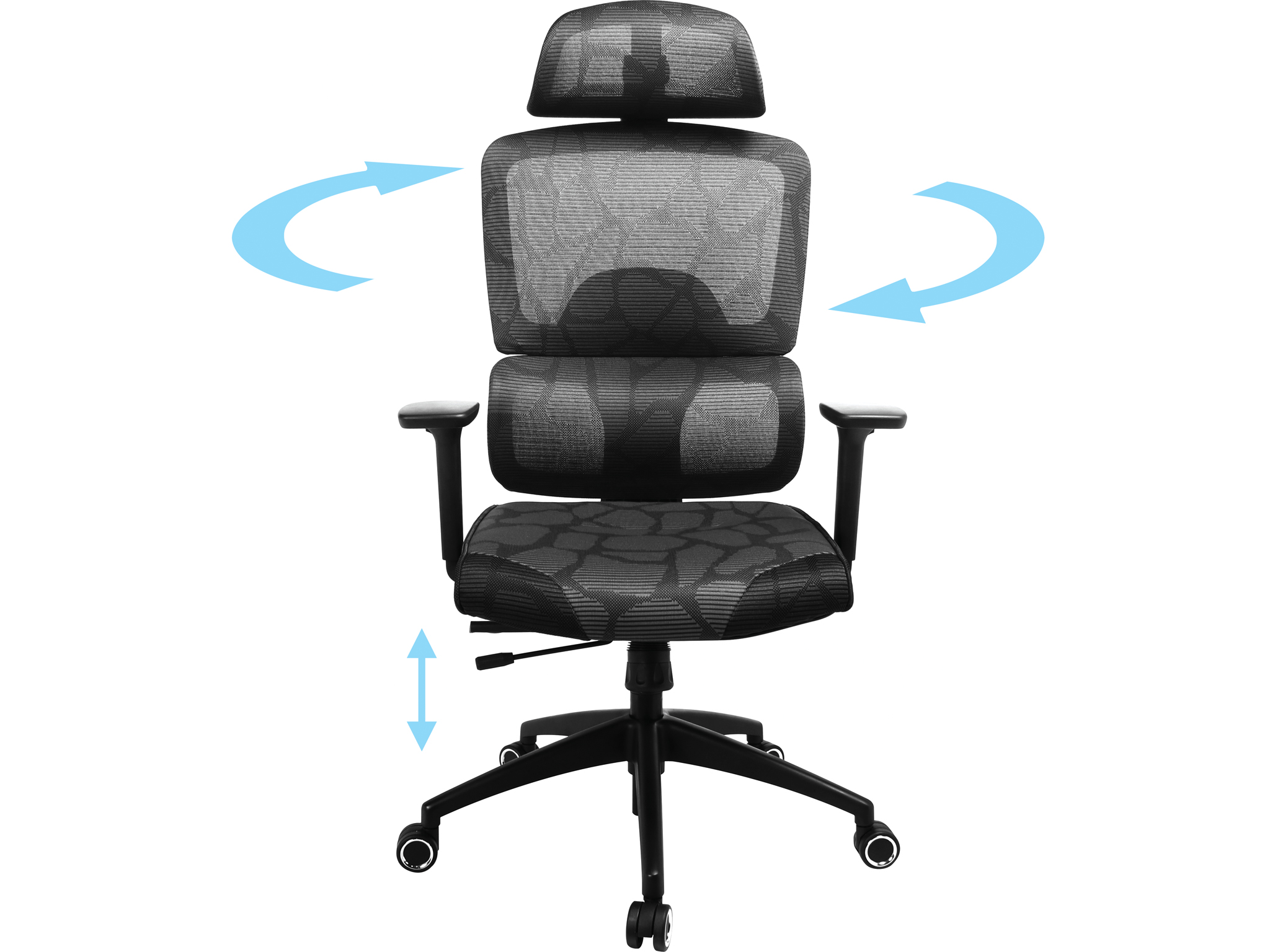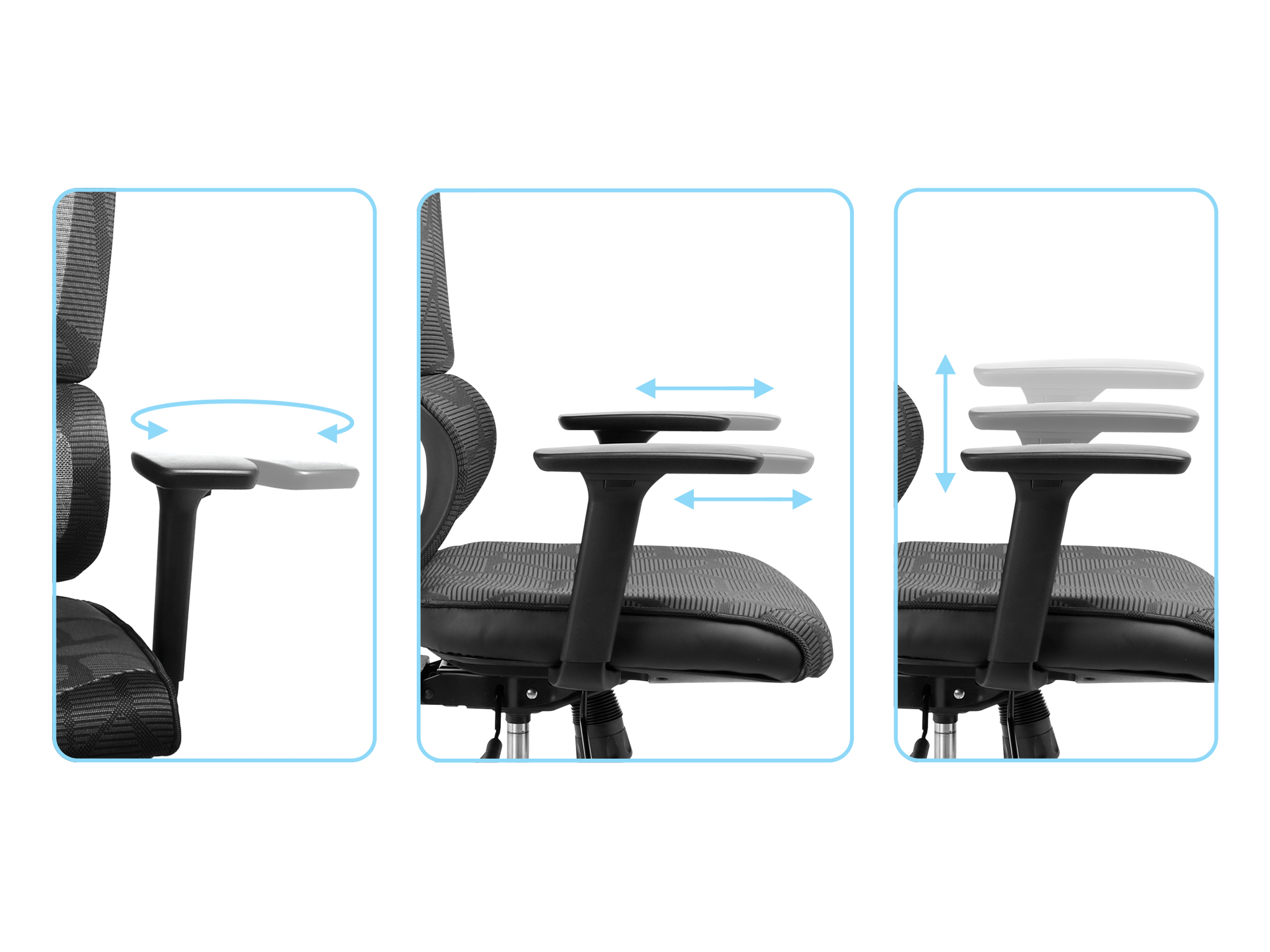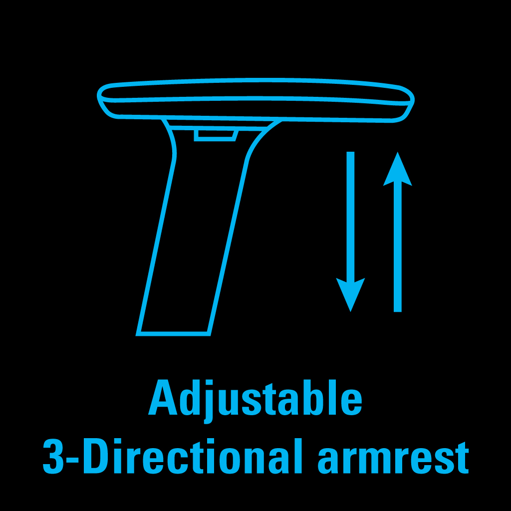 • Armrest: 3D Up/down, back/forth & swivel adjustable