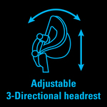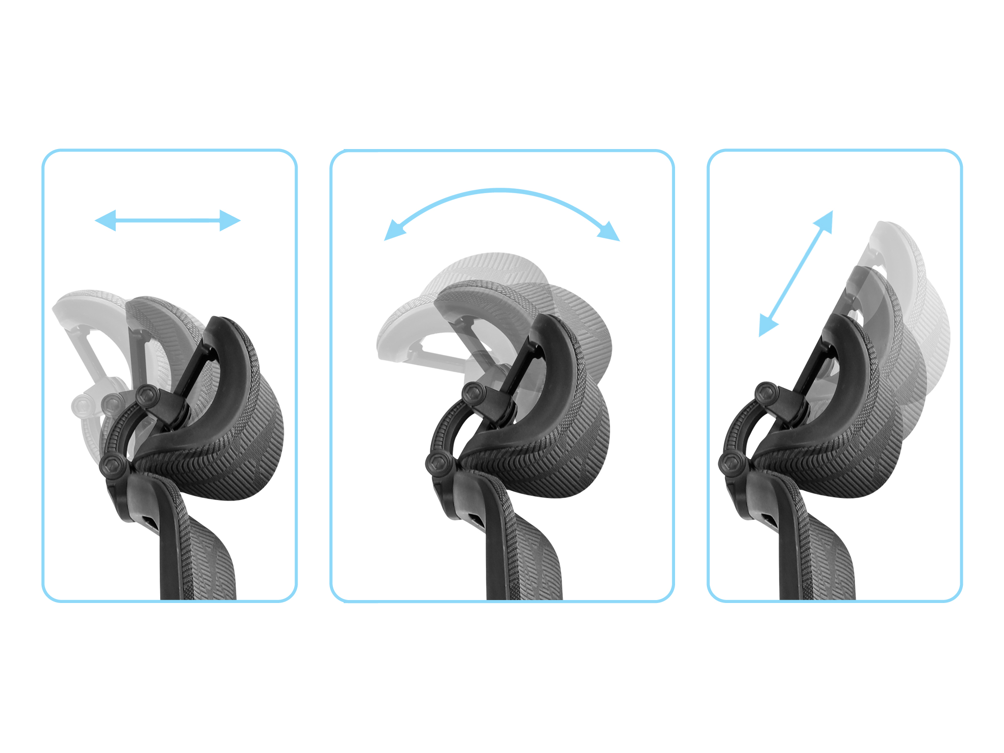 • 3D Headrest: height, headrest surface rotation, headrest frame forward and backward