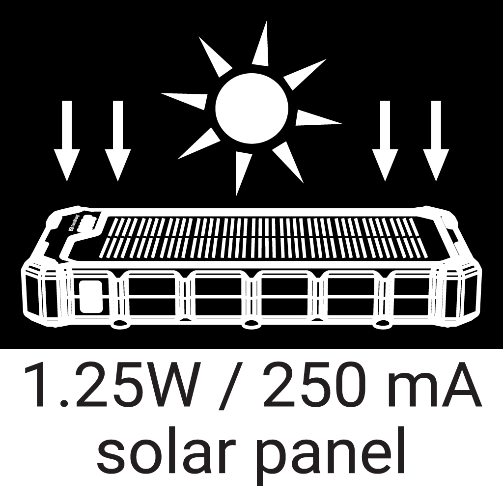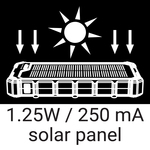 • Charging time by sun 0-25%: 8 hours (at ideal sunlight)