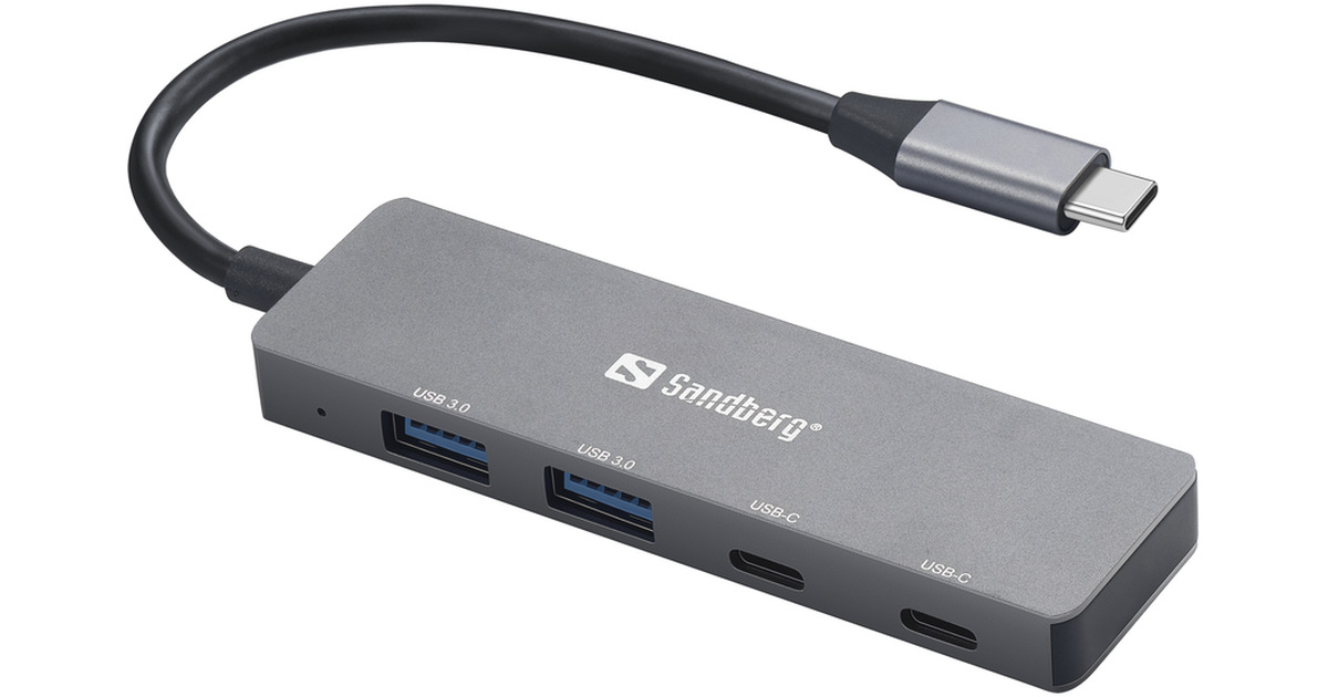 The Sandberg USB-C to 2xUSB-A + 2xUSB-C Hub means you can expand your computer’s USB-C port with 2 new USB-C ports and 2 new USB-A ports. You can have a USB stick, printer and mouse connected simultaneously for example. Works immediately without driver installation.