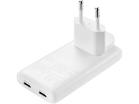 Sandberg 4in1 TravelCharger 2xUSB-C 65W er ein kraftmikil og ultra-tunn ferðaladdari við tveimum USB-C PD portum. Hann gevur upp til 65W, so sjálvt farteldur kunnu ladast skjótt, og tá báðir portarnir eru í nýtslu, verður krafturin býttur skynsamt (45W + 12W). Laddarin kemur við einum samanberandi US stikki, sum eisini passar í stórum pørtum av Asia, og hevur viðfestar adapterar til ES, UK og Avstralia, so tú ert klárur til flestu lond í heiminum. Húsið er eldfast og sterkt, perfekt til ferðing.