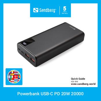 • 1 Sandberg Powerbank USB-C PD 20W 20000