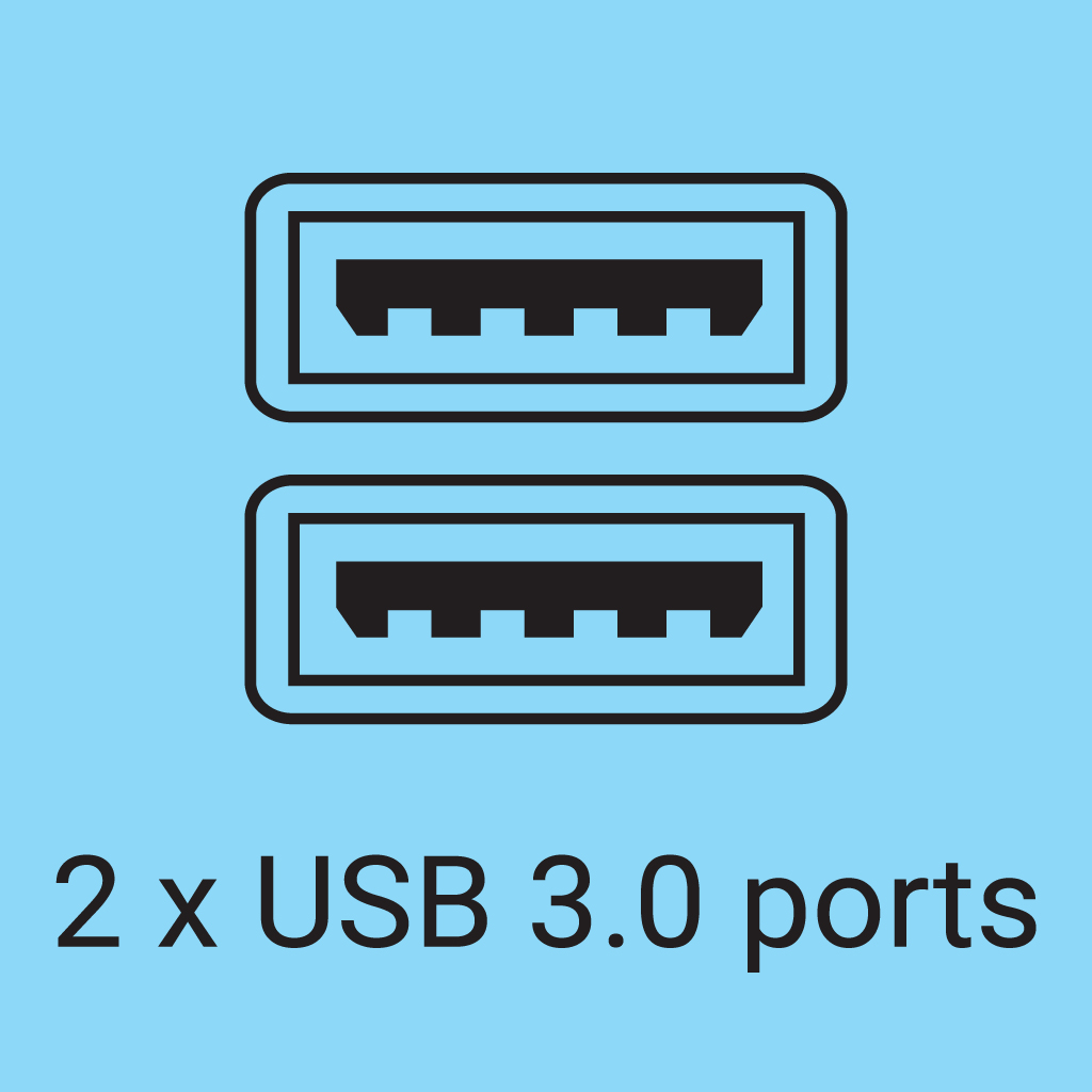 Ce socle très pratique de connexion de plusieurs moniteurs avec USB-C permet de raccorder deux moniteurs supplémentaires. De plus, vous obtenez deux connecteurs USB-A traditionnels, par exemple pour une souris ou une clé de mémoire USB, en plus d’un connecteur d’alimentation PD USB-C pour prolonger l’alimentation électrique de votre ordinateur portable. Connecteur RJ45 pour connexion réseau câblée.