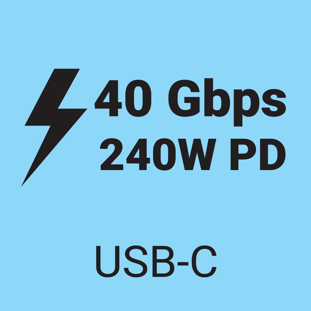 Munjevito brza USB4 tehnologija podržava brzine prenosa podataka do 40 Gbps. Punjenje je u potpunosti podržano do 240W PD.