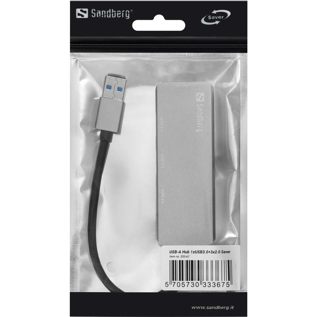 Med Sandberg USB-A Hub 1xUSB3.0+3x2.0 SAVER får du många möjligheter att ansluta extra USB-enheter till din dator. Därmed kan du samtidigt ha en extern hårddisk, skrivare och mus ansluten. Den ansluts till en USB-port och fungerar direkt – utan att du behöver installera några drivrutiner.