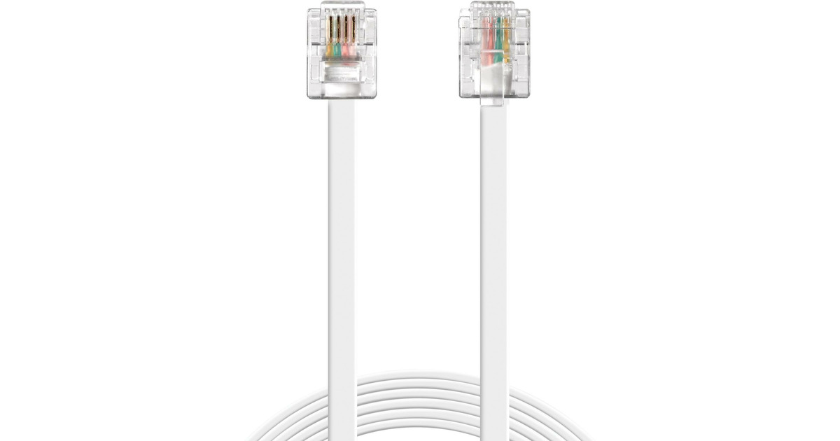 Telefonkabel med RJ11-kontakt i båda ändarna. Kabeln kan t.ex. användas för att ansluta en telefon till en väggkontakt med RJ11-uttag.